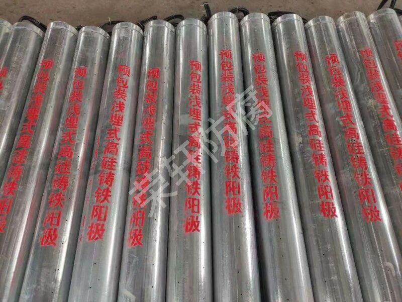 深井陽(yáng)極一般采用硅鐵陽(yáng)極或混合金屬氧化物筒狀陽(yáng)極,鋪設(shè)好陽(yáng)極后用冶金焦炭或者煅燒石油焦炭回填陽(yáng)極溝而成。通常情況下埋在15--20米以下并以豎直方向擺放。